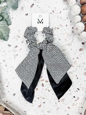 Add a playful pop to your ponytail with the Annabelle Ribbon Scrunchie. This single scrunchie features a solid ribbon and a patterned ribbon that gives you that bow look. It is perfect for adding a touch of whimsy to any hairstyle. Keep your hair secured while looking stylish!