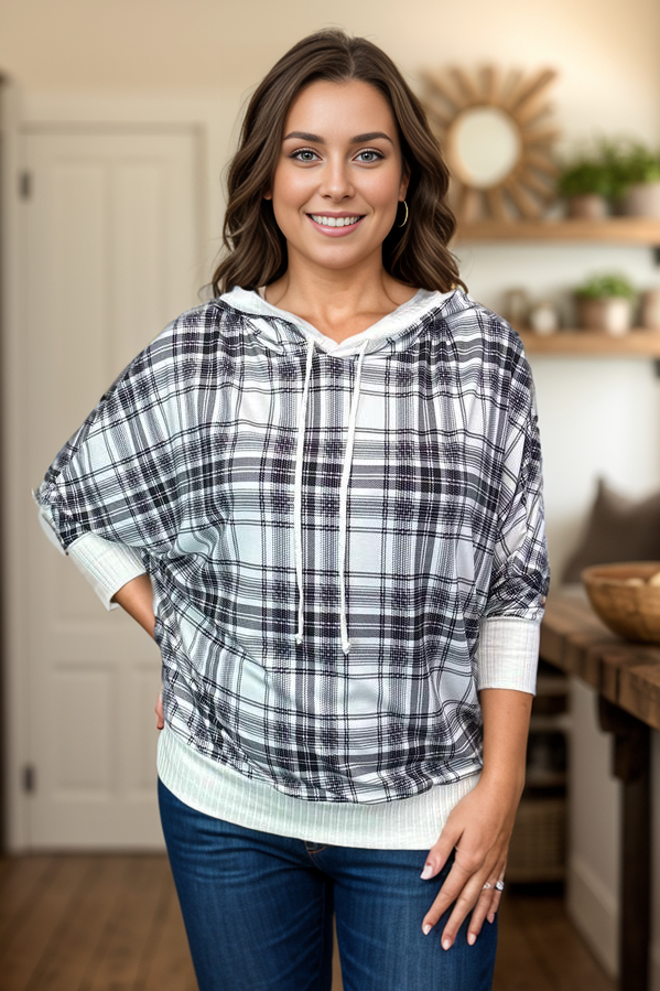 Get the perfect balance of comfort and style with our Check Me Out hoodie. Featuring a trendy 3/4 sleeve design, a drawstring hoodie, and a chic plaid pattern, this lightweight hoodie is the perfect addition to any casual outfit. So go ahead, check yourself out!